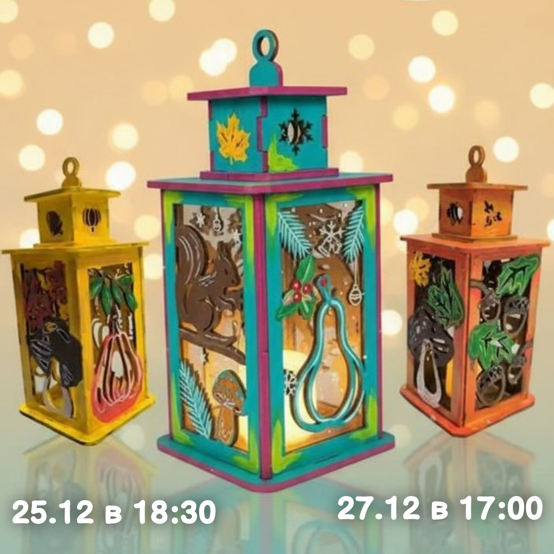 - 25.12, 18:30 или 27.12, 17:00 — Раскрашиваем и собираем светильник «Уличный фонарь» (диодная свечка в подарок)