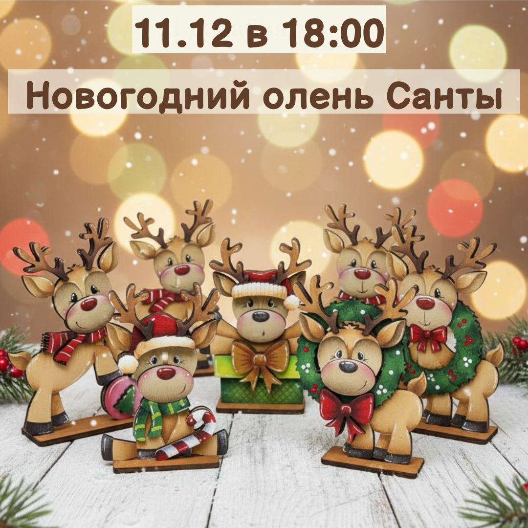 - 11.12, 18:30 — Раскрашиваем и собираем деревянное многослойное панно «Новогодний олень Санты» 5+