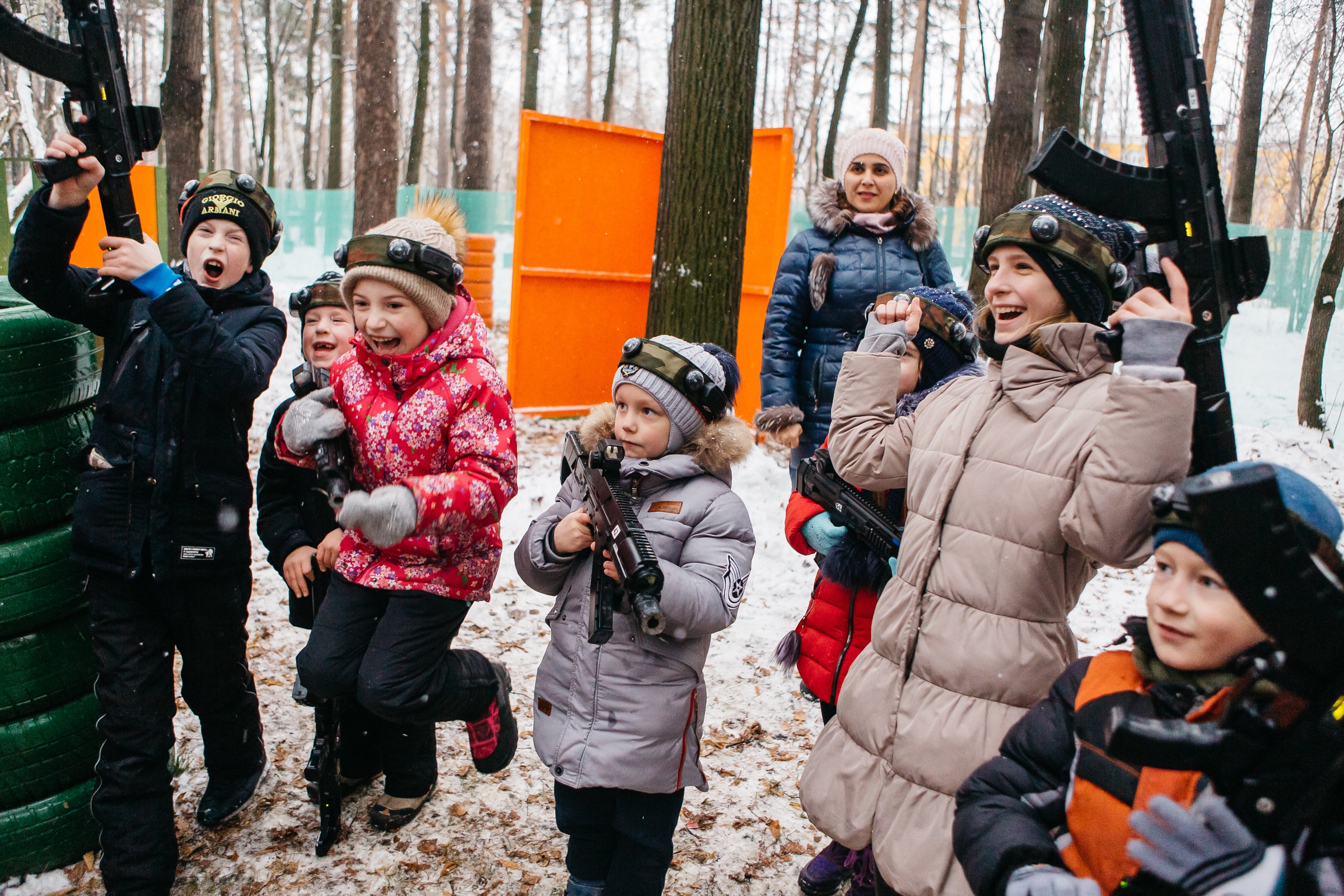 Для ребят мы подготовили насыщенные разнообразные сценарии игры: "Хищники", "Принцесса и разбойники", "Спасение командира", "Битва с драконами", "Киборги", "Зомби", "Царь горы", "Линия фронта" и др.