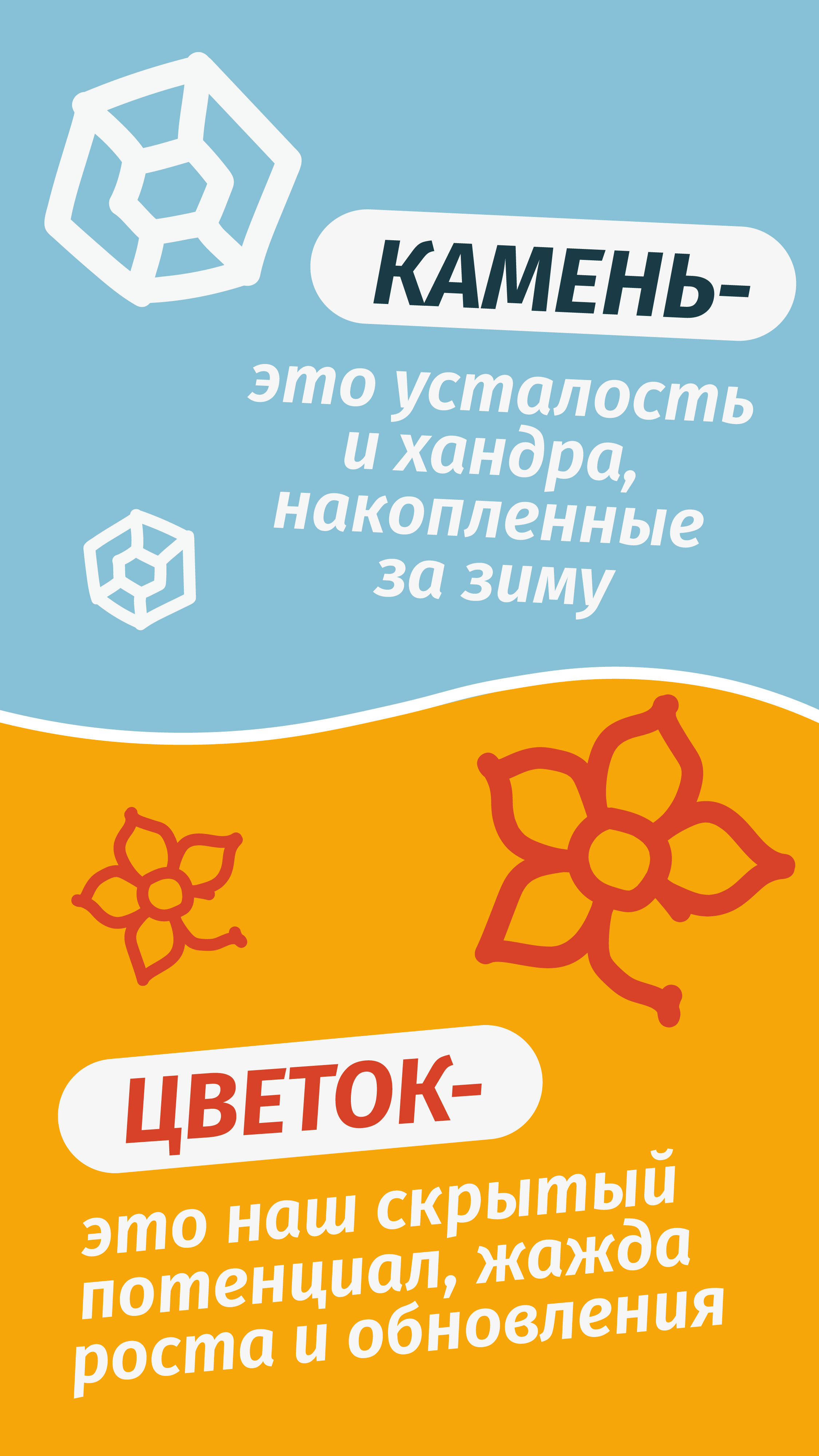 А хотите узнать его секрет? Внутри каждого из нас, даже в самую зимнюю стужу, живёт маленькое чудо. Как у Данилы-мастера в сказе. «Камень» — это всё, с чем мы приходим к концу зимы: усталость от холодов, школьные или рабочие заботы, привычка кутаться в тёплые пледы. А «Цветок» — это наша спрятанная радость, мечты о лете, детский восторг и энергия, которые ждут своего часа под снегом. Это символ силы вашей семьи, вашего совместного творчества и надежды.