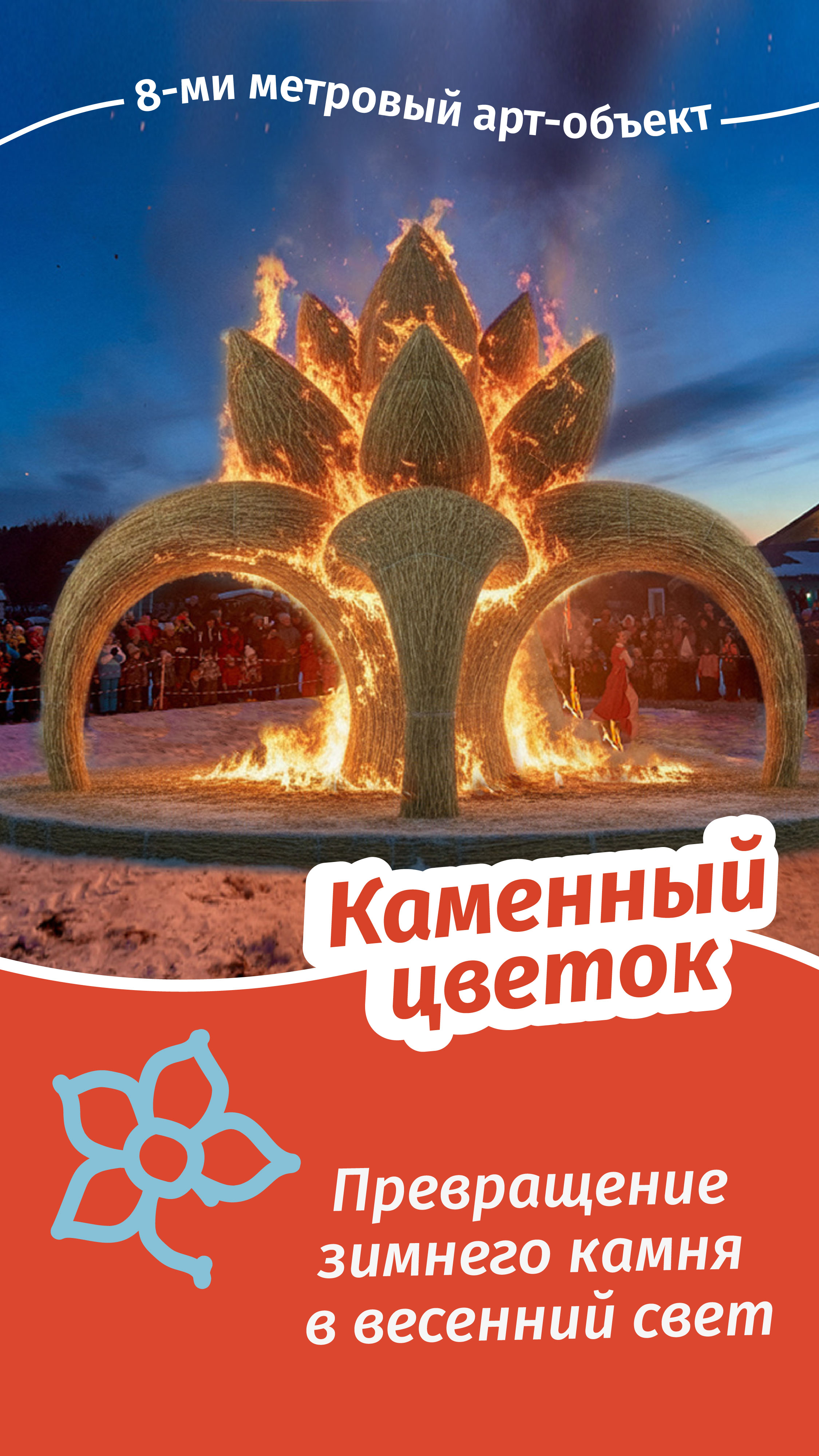 Наш фестиваль Масленицы в Парке Сказов — это всегда волшебная история для всей семьи. И в 22 февраля её сердцем станет большой и удивительный арт-объект «Каменный цветок». Мы выбрали его, чтобы вместе с вами, и с детьми, и с родителями, окунуться в мир уральских сказов, которые помнят бабушки и дедушки. Это образ из любимых легенд Бажова, наш общий культурный код, который понятен каждому и создаёт особенное, тёплое настроение.