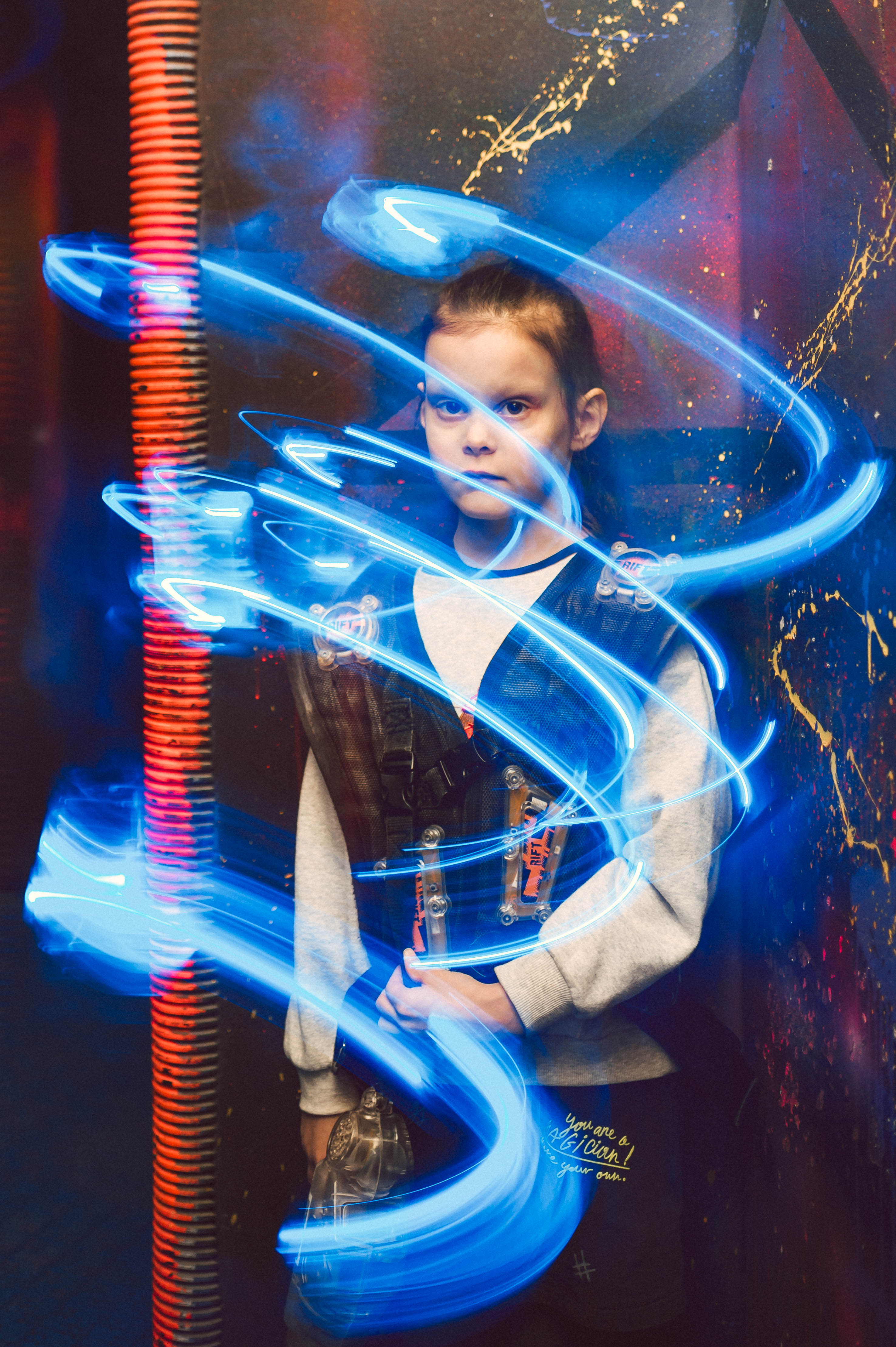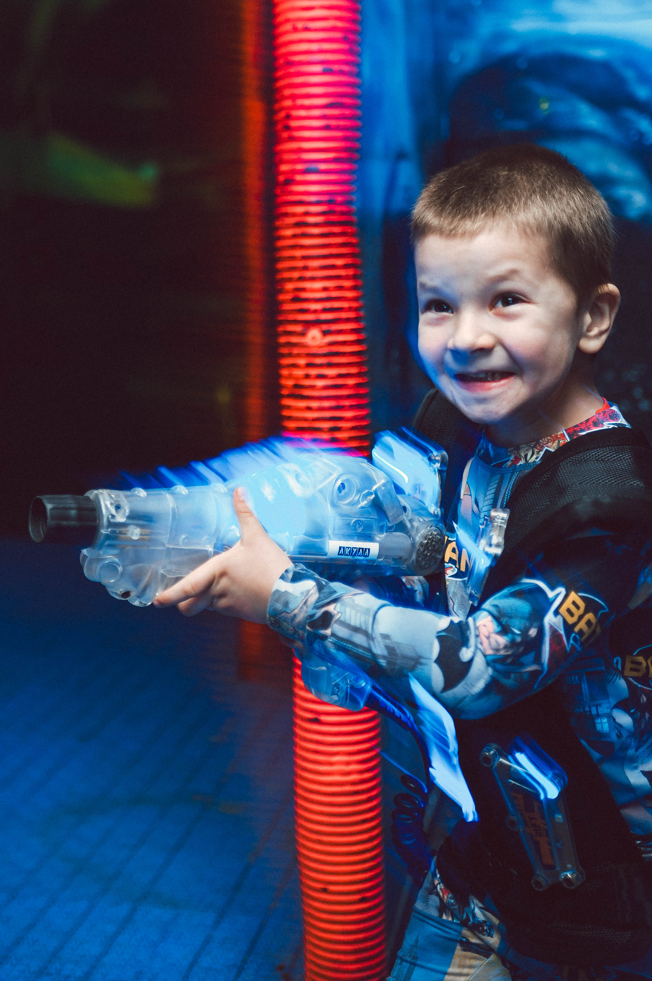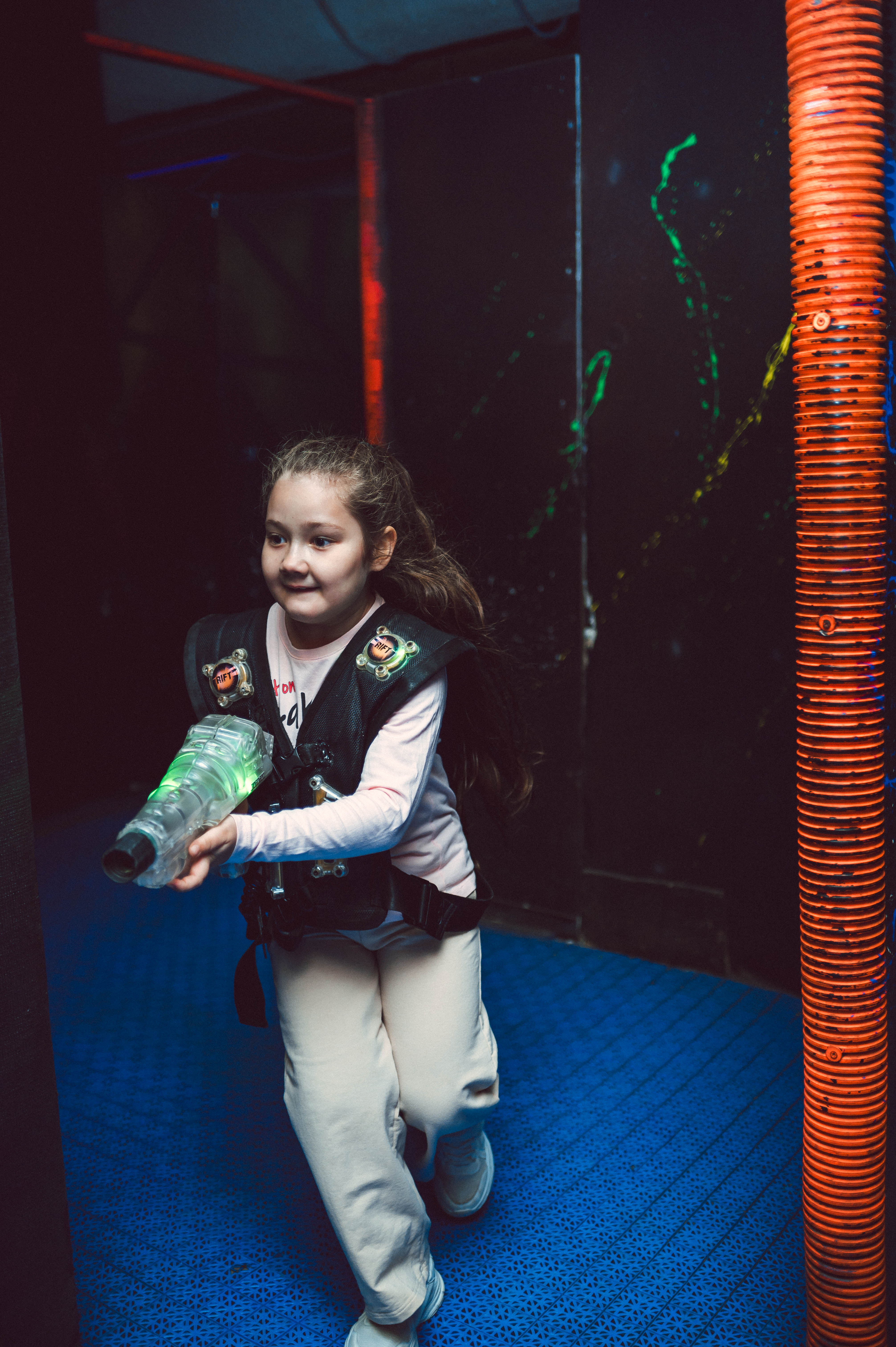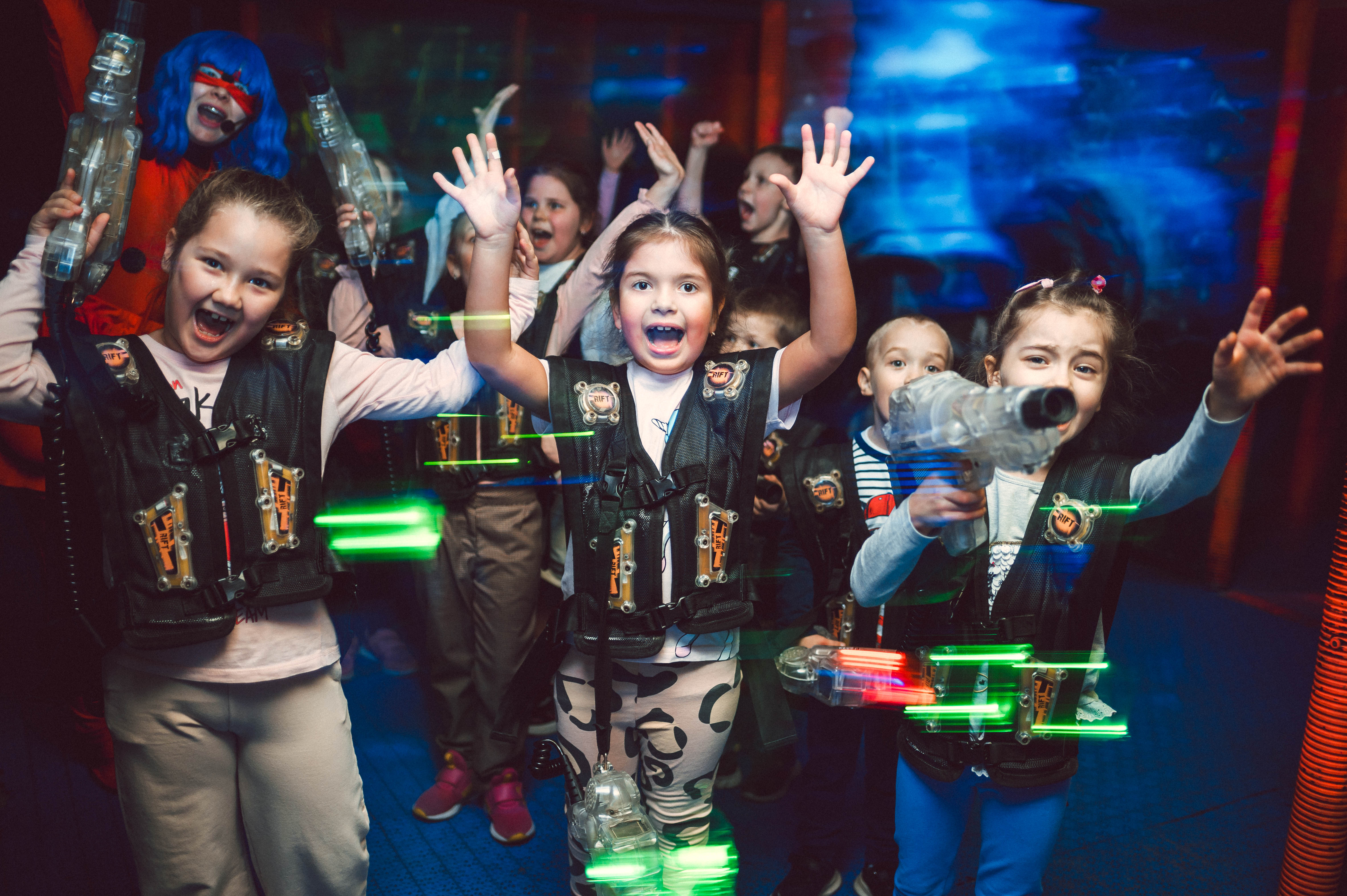 Максимум впечатлений: больше лазертага, аттракционов, неоновое бумажное шоу, анимация и поздравление для всей группы.