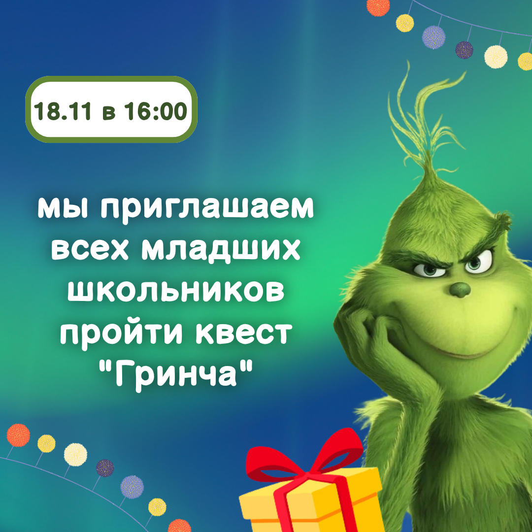 18 ноября мы отмечаем день рождения Дедушки Мороза и зовем всех маленьких исследователей на увлекательный квест от "Гринча"!