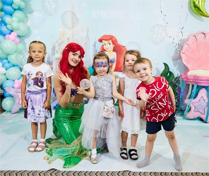На праздник придёт Русалочка Ариэль — весёлая, отважная и любопытная героиня, которая увлечёт детей играми, конкурсами и приключениями в подводном мире! 🐠