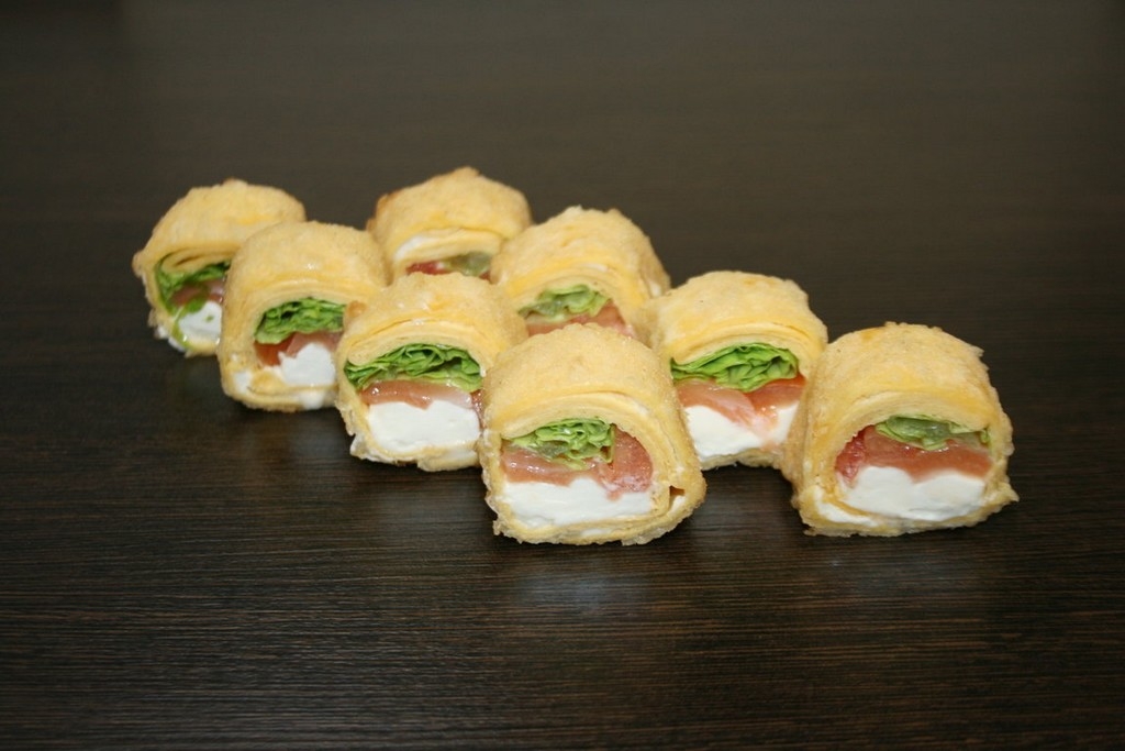 Тортилья, сливочный сыр, лосось, томат, лист салата, кляр. 220 гр