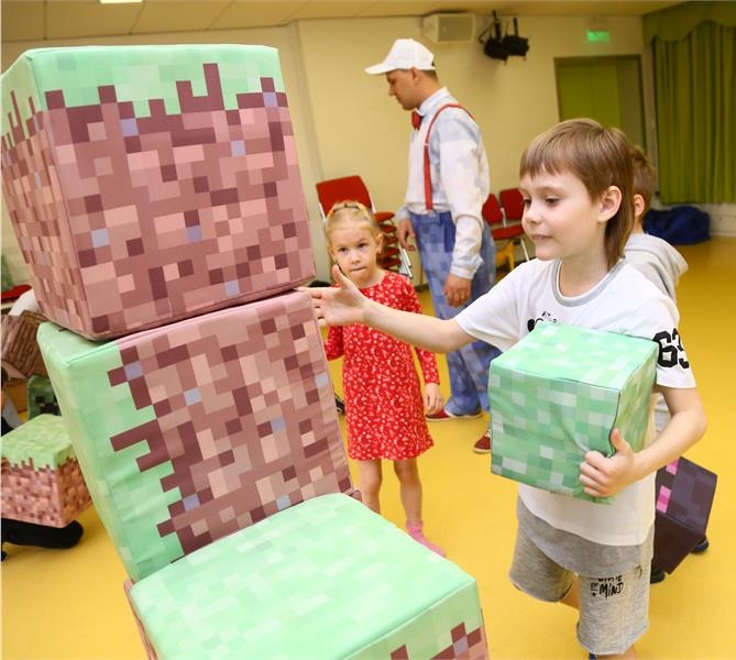 Особая лампа сигнализирует о пройденных уровнях, а яркий костюм аниматора полностью погружает детей в атмосферу игры 🌟.