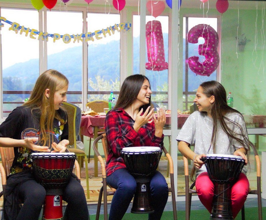 В общем «барабанном круге» играем на настоящих африканских барабанах Джембе, от которых горят щёки и ладошки, а улыбки не сходят с лиц. Каждому – по барабану! Учим зажигательны ритмы Африки, создаём ритм своей дружной компании, ну и, финал – торжественное Посвящение в Барабанщики!