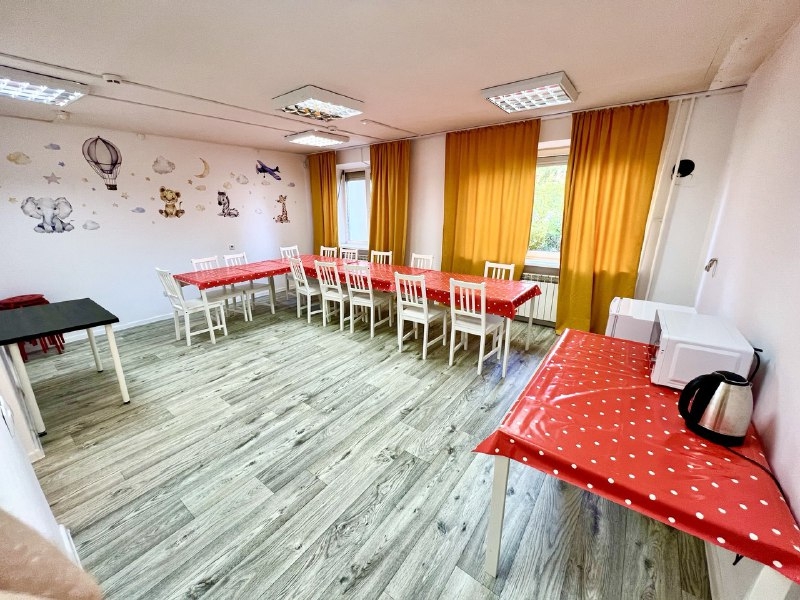 Отдельная зона для чаепития на 25 посадочных мест. Есть холодильник, чайник, микроволновка, питьевая вода ;