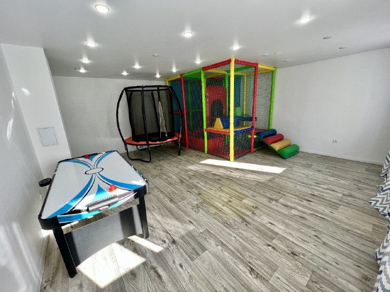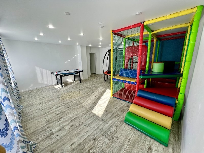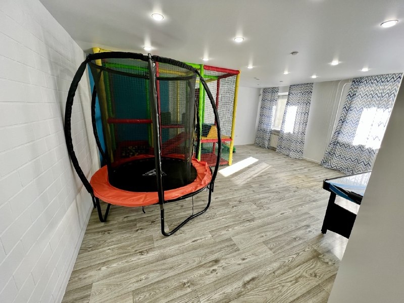 Игровая комната с батутом, игровым лабиринтом и аэрохоккеем