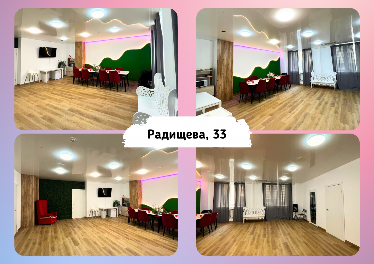 В зависимости от возраста, числа гостей и предпочтений можно выбрать интерьер пространства: “Лофт зал” или “Сладкий зал”