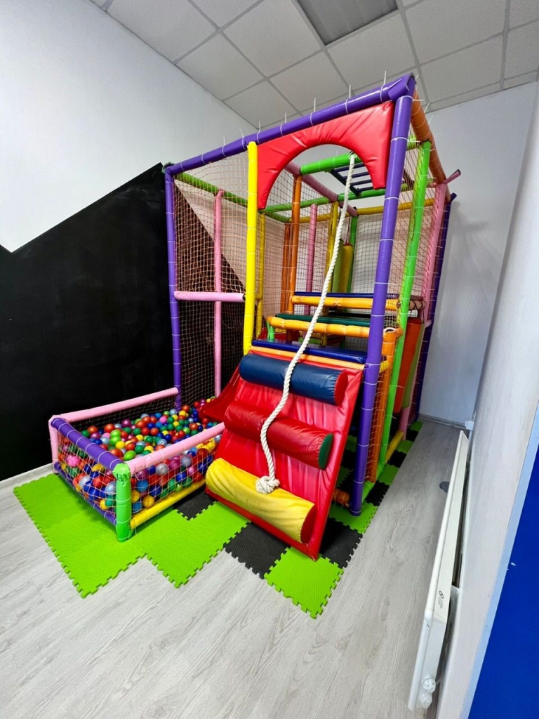Игровая комната с батутом и игровым лабиринтом
