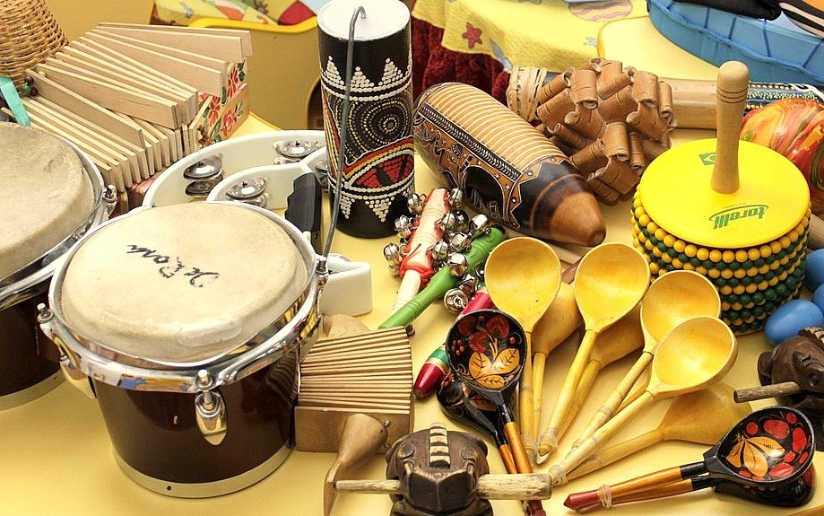 Современная перкуссия и народные шумовые инструменты (бубны, ложки, трещотки...) укрепят связь с родной землёй и "корневыми" ритмами.