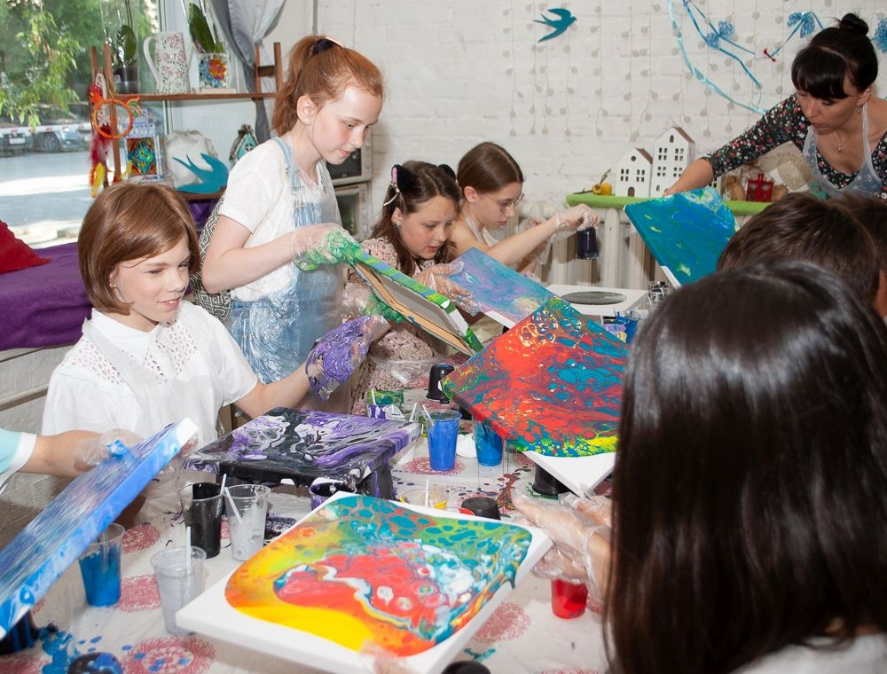 На заметку: формат творческого Дня Рождения "Флюид-арт" подходит как детям, так и взрослым.