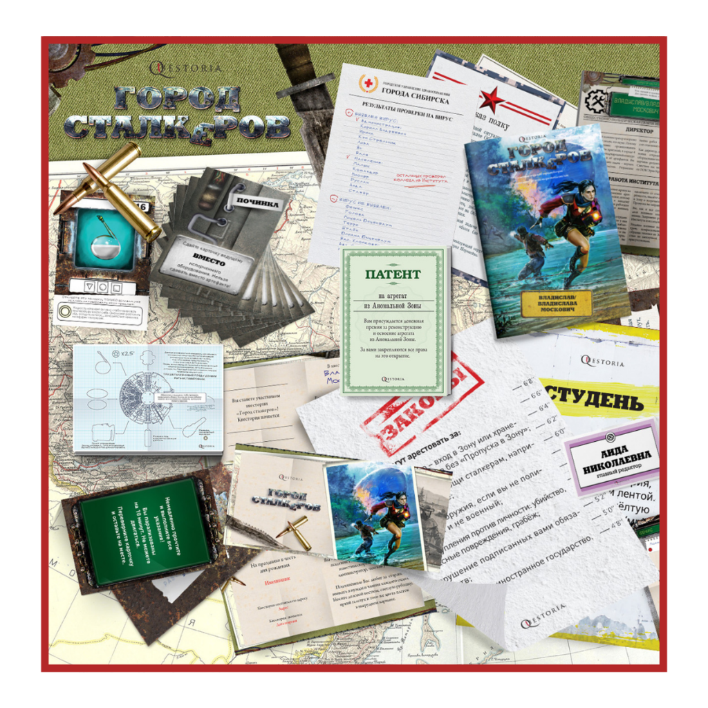 Особенности | Данный живой квест отличается от остальных игр «Квестории» тем, что проводится не в кафе, а либо на свежем воздухе, либо в большом помещении, разделённом на несколько небольших комнат, например, заводском цехе или большом офисе. Обратите внимание: стоимость проведения игры «Город сталкеров» в два раза выше, чем обычной игры, ввиду необходимости работы двух ведущих и необходимости падения метеорита для организации на месте игры Аномальной Зоны. |