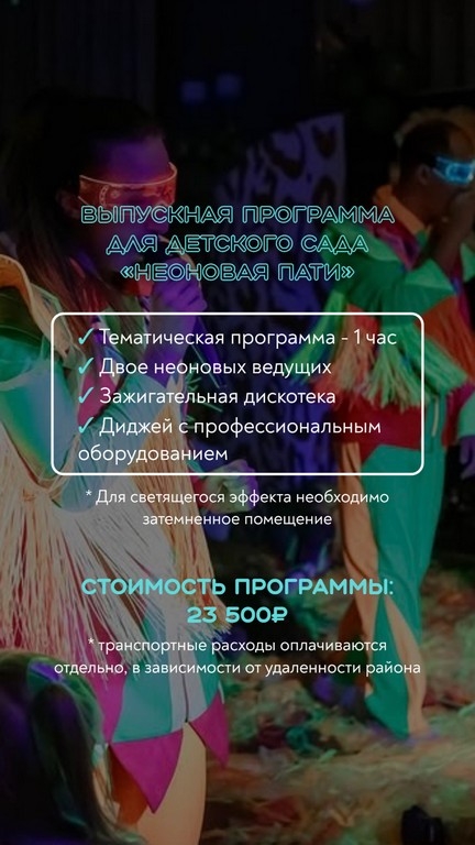 ВЫПУСКНАЯ ПРОГРАММА ДЛЯ ДЕТСКОГО САДА "НЕОНОВАЯ ПАТИ"