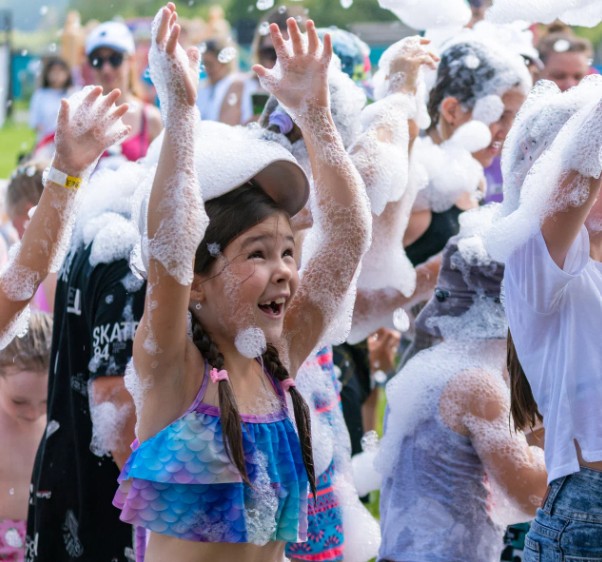 Химические эксперименты от Незнайки, современные челленджи от Кнопочки, логические загадки от Знайки, а яркий финал праздника – неоновая бумажная дискотека.